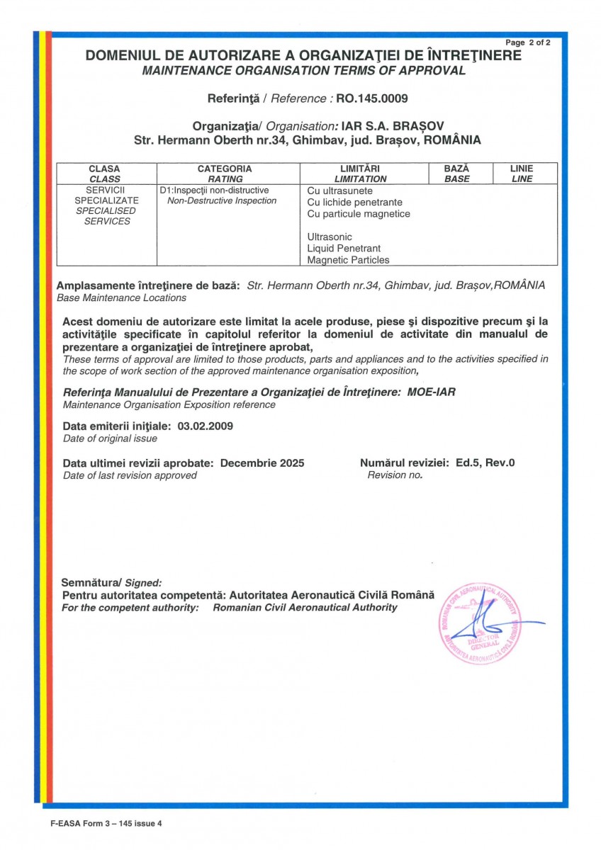 IAR S.A. are personal calificat și atestat în efectuarea inspecțiilor și testarilor nedistructive: